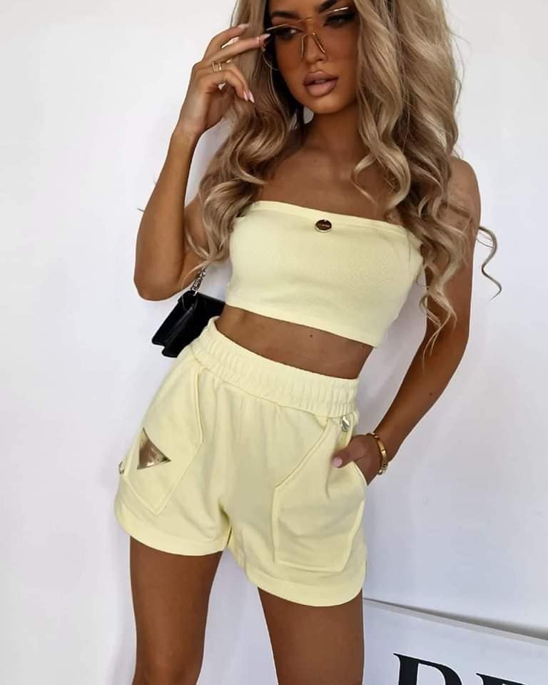 Bawełniany Komplet MIAMI , składający się z klasycznych szortów oraz przepaski na piersi.